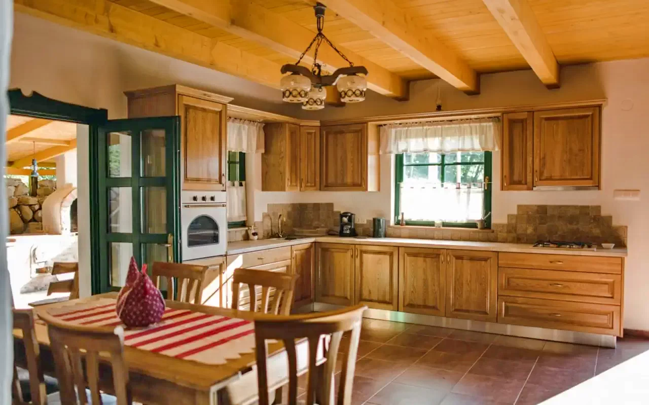 - O bucătărie complet utilată este la dispoziția oaspeților, dotată cu toate echipamentele necesare pentru gătit.