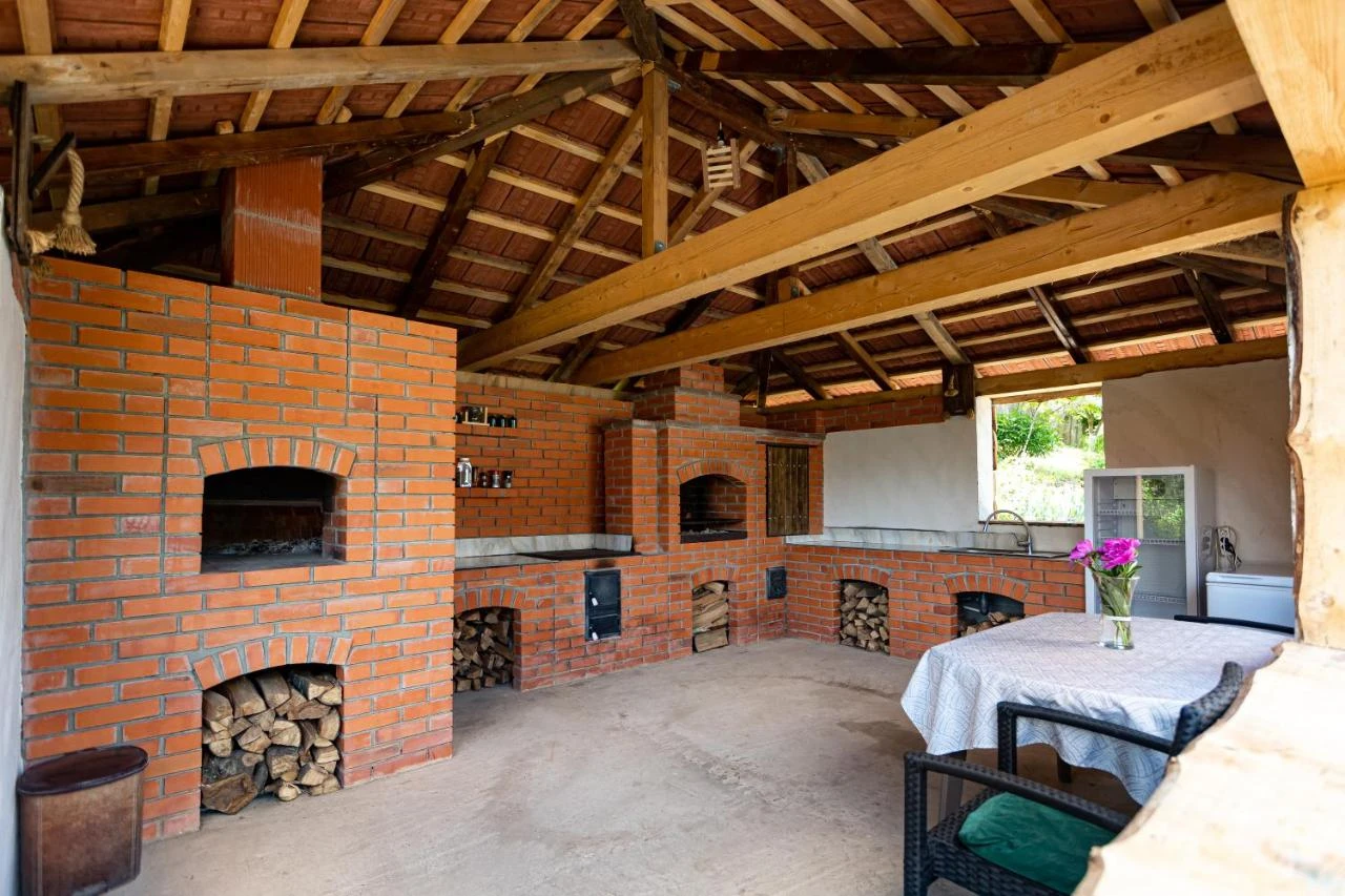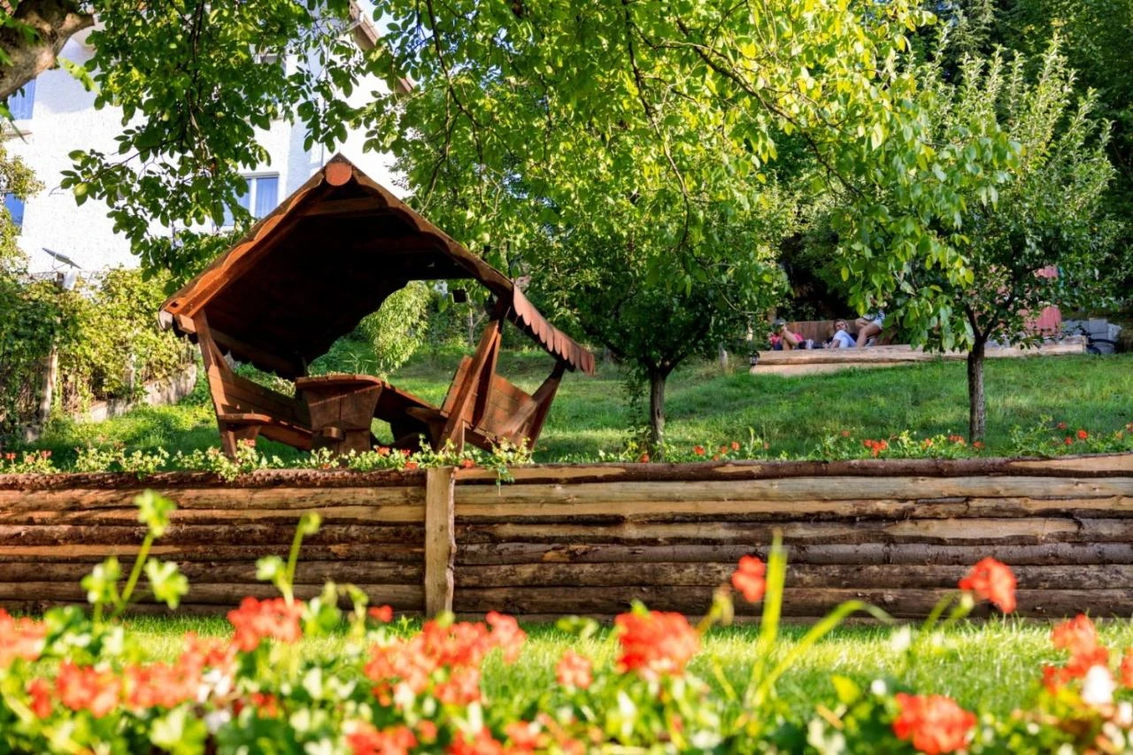 - În curtea spațioasă, turiștii pot savura preparate pregătite la grătar sau ceaun în foișorul special amenajat.