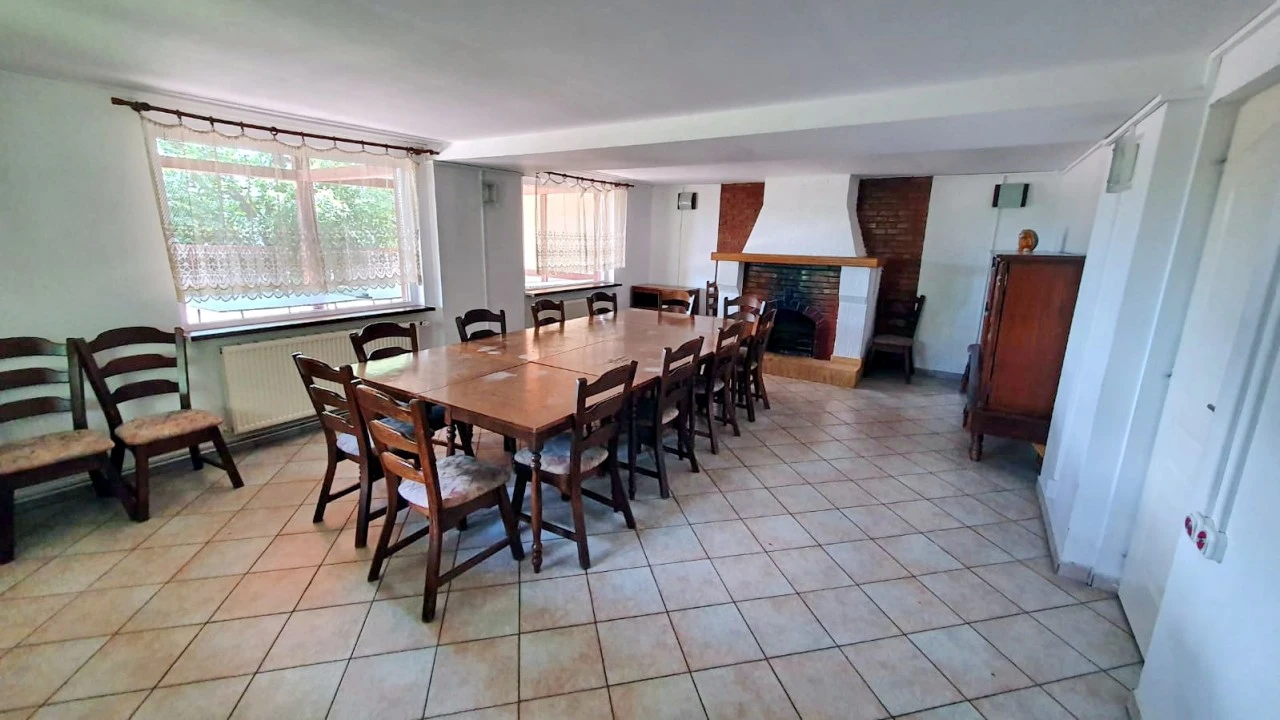 - Oaspeții pot lua masa în sufrageria mare, cu o capacitate de 20 de persoane, unde un șemineu adaugă o notă deosebită atmosferei.