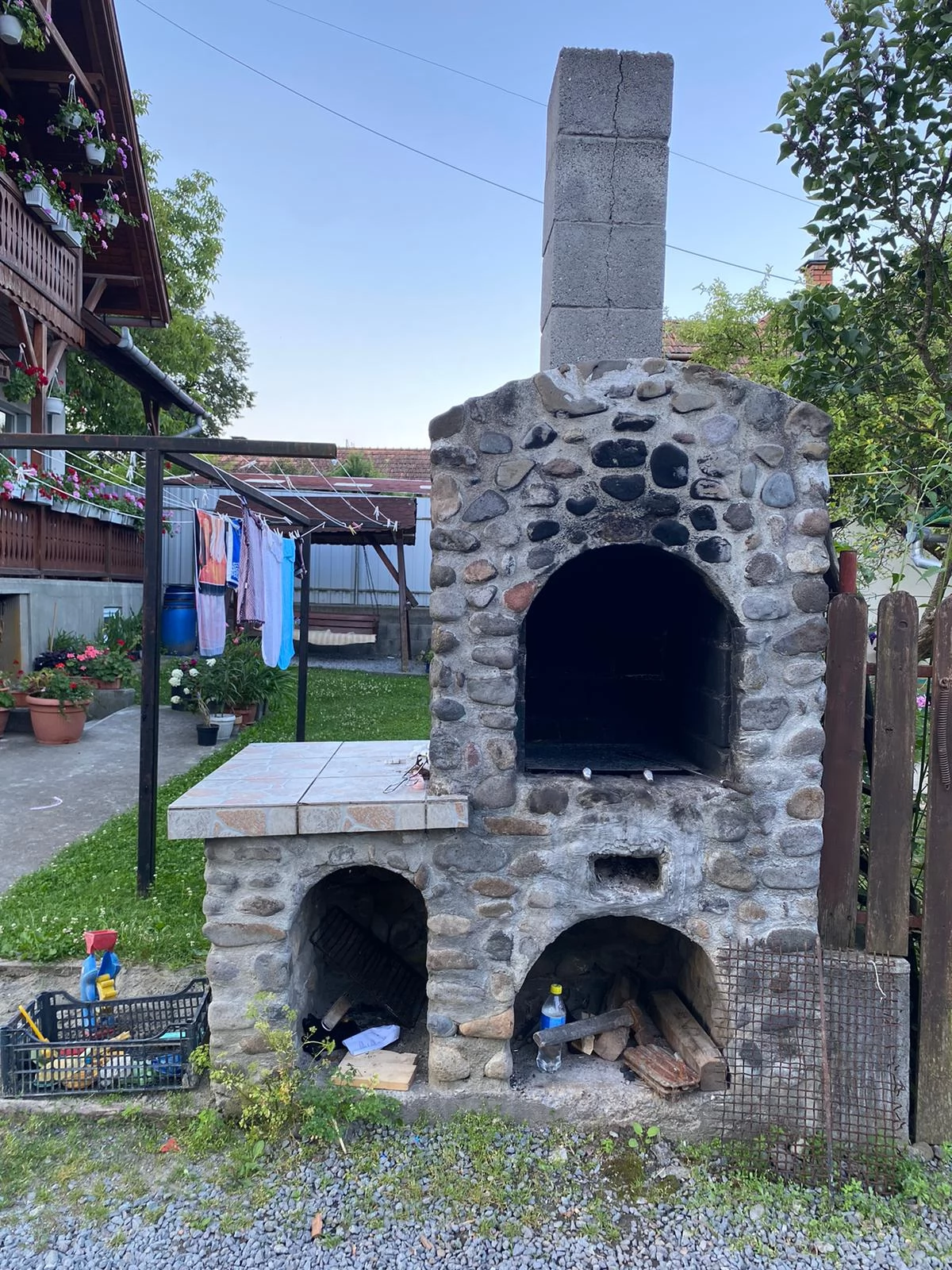 În curte are leagăn, un cuptor, loc amenajat pentru gratar si ceaun, iar pentru copii mici loc de joaca cu nisip.