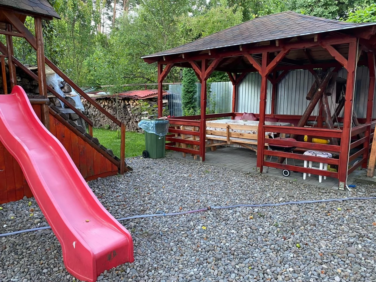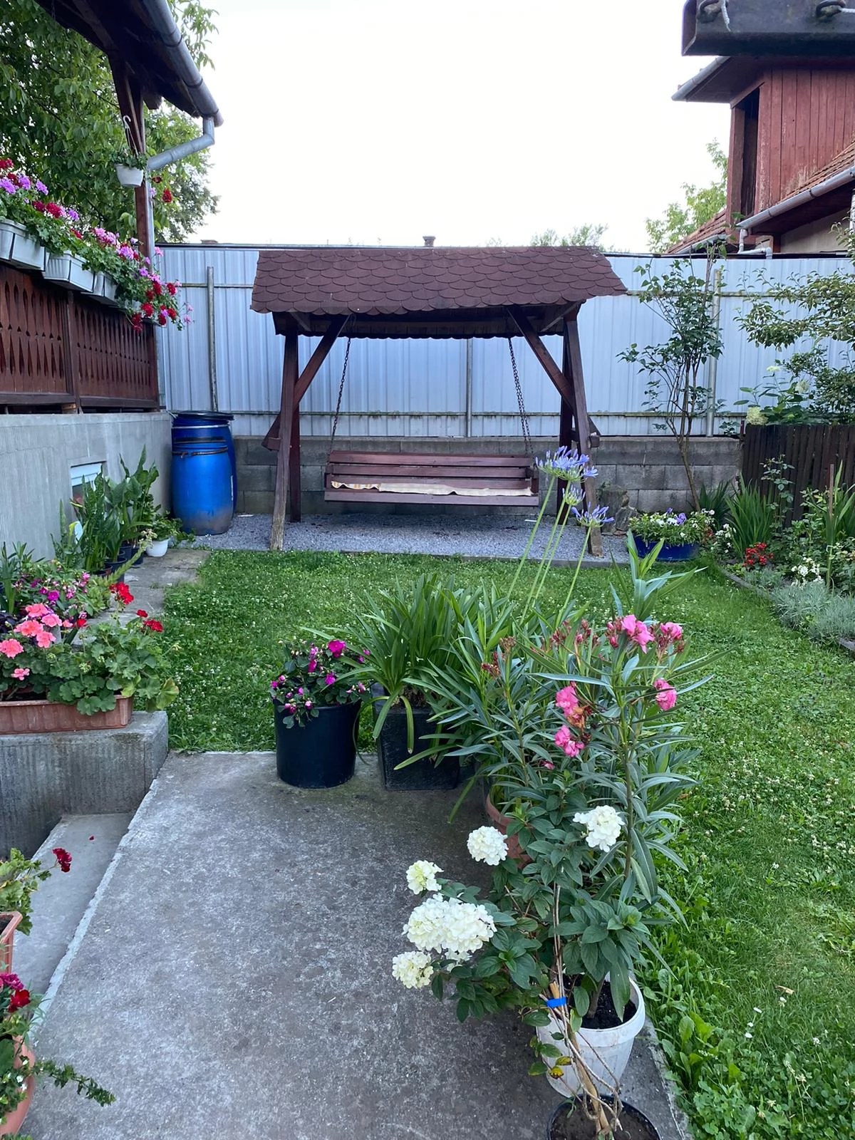 În curte are leagăn, un cuptor, loc amenajat pentru gratar si ceaun, iar pentru copii mici loc de joaca cu nisip.