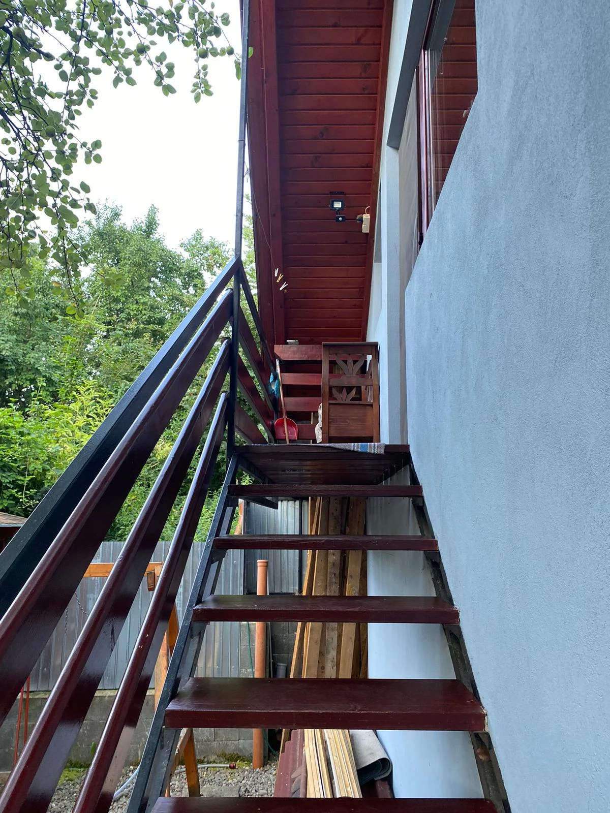 Apartamentul se află într-o clădire separată în curtea din spate a Pensiunii, cu următoarea structură: