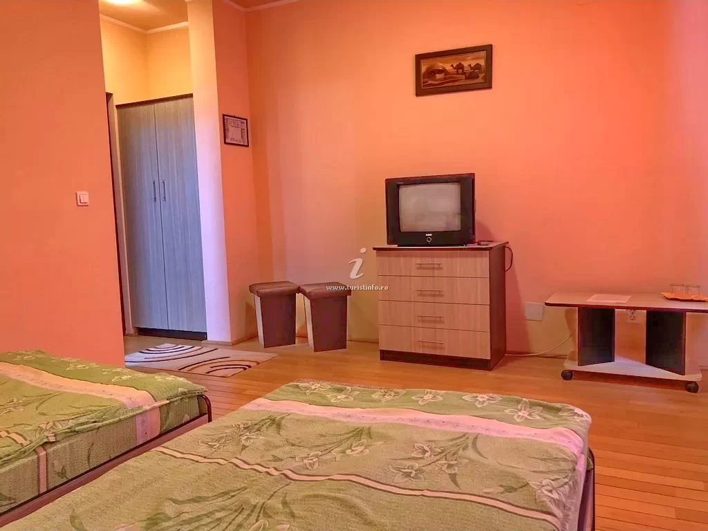 - Pentru 10 persoane se asigura cazarea in casa de vacanta (prima cladire), iar entru 14 persoane asigura cazarea in casa de vacanta, plus in casuta (a doua cladire) cu 2 camere decomandate (fiecare cu baie proprie) aflata in curtea comuna casei de vacanta.