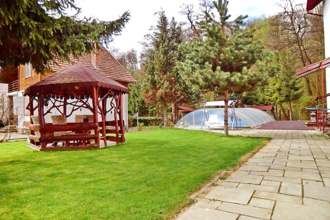 Cazare Sovata Vila*** | La liziera pădurii lângă rău, piscina, bucătărie, sală de mese, Wi-Fi, foișor, grătar, loc de joacă copii, parcare | 2 km Lacul Ursu, 2 km Pârtia Sovata, 12 km Salina Praid