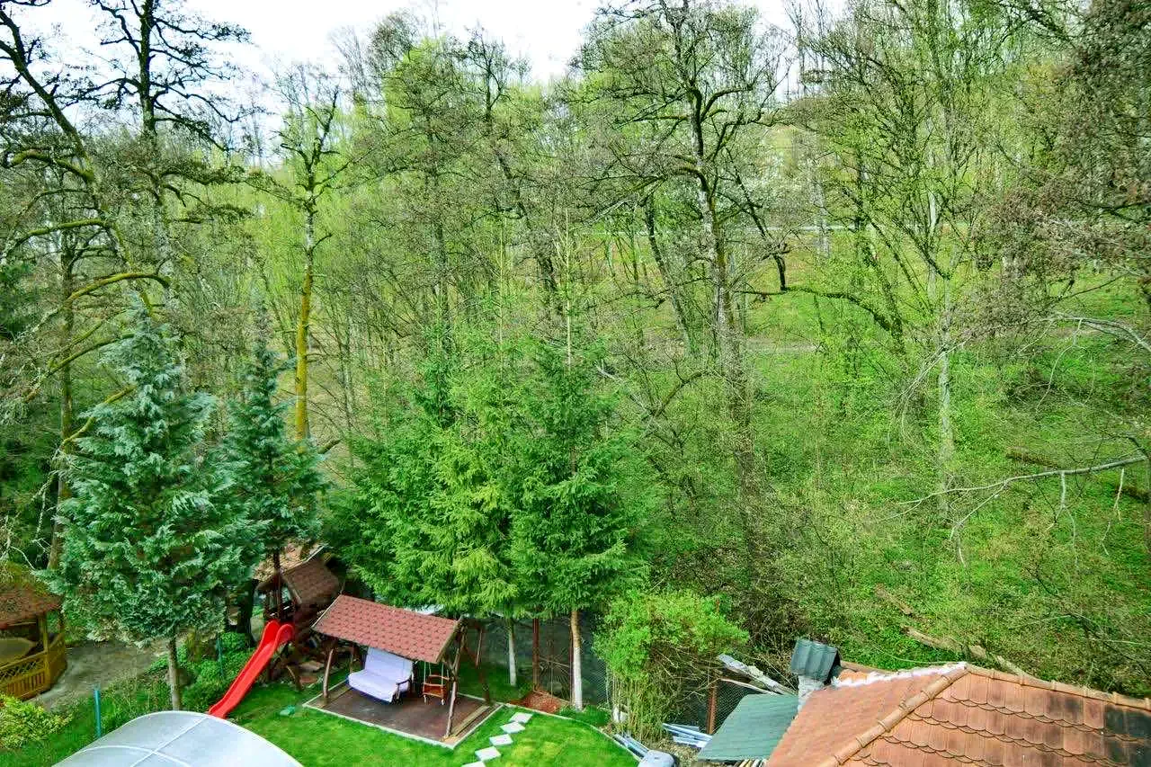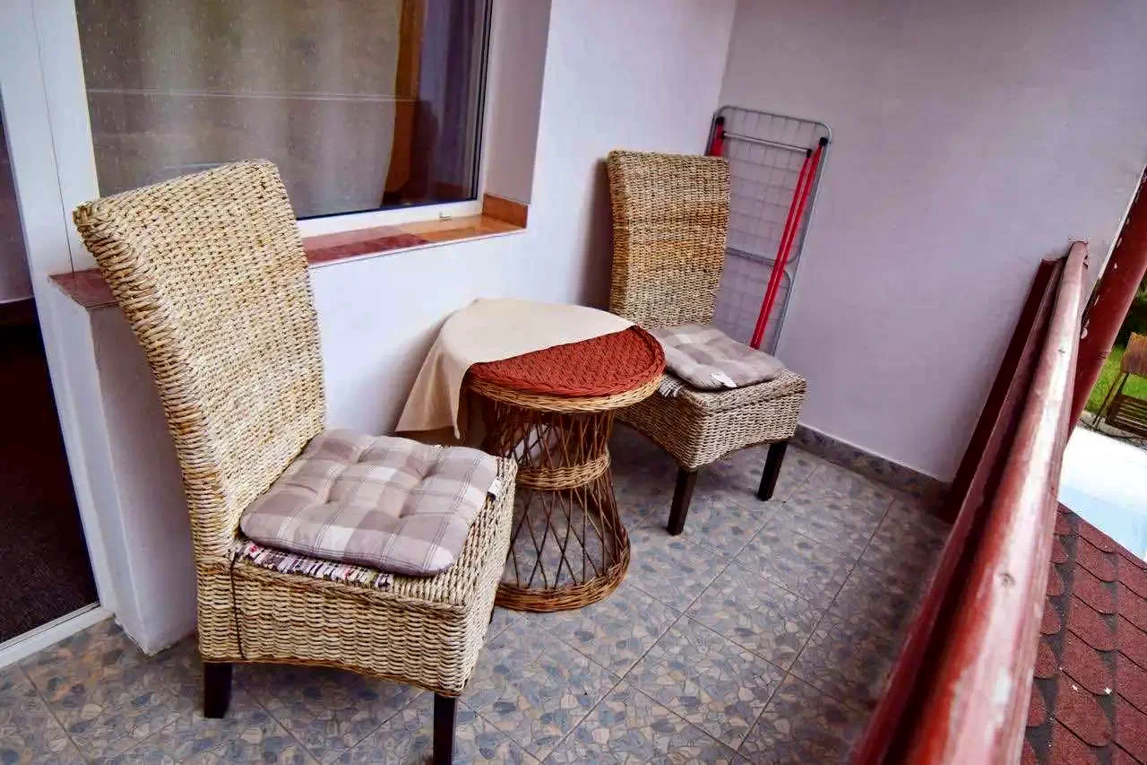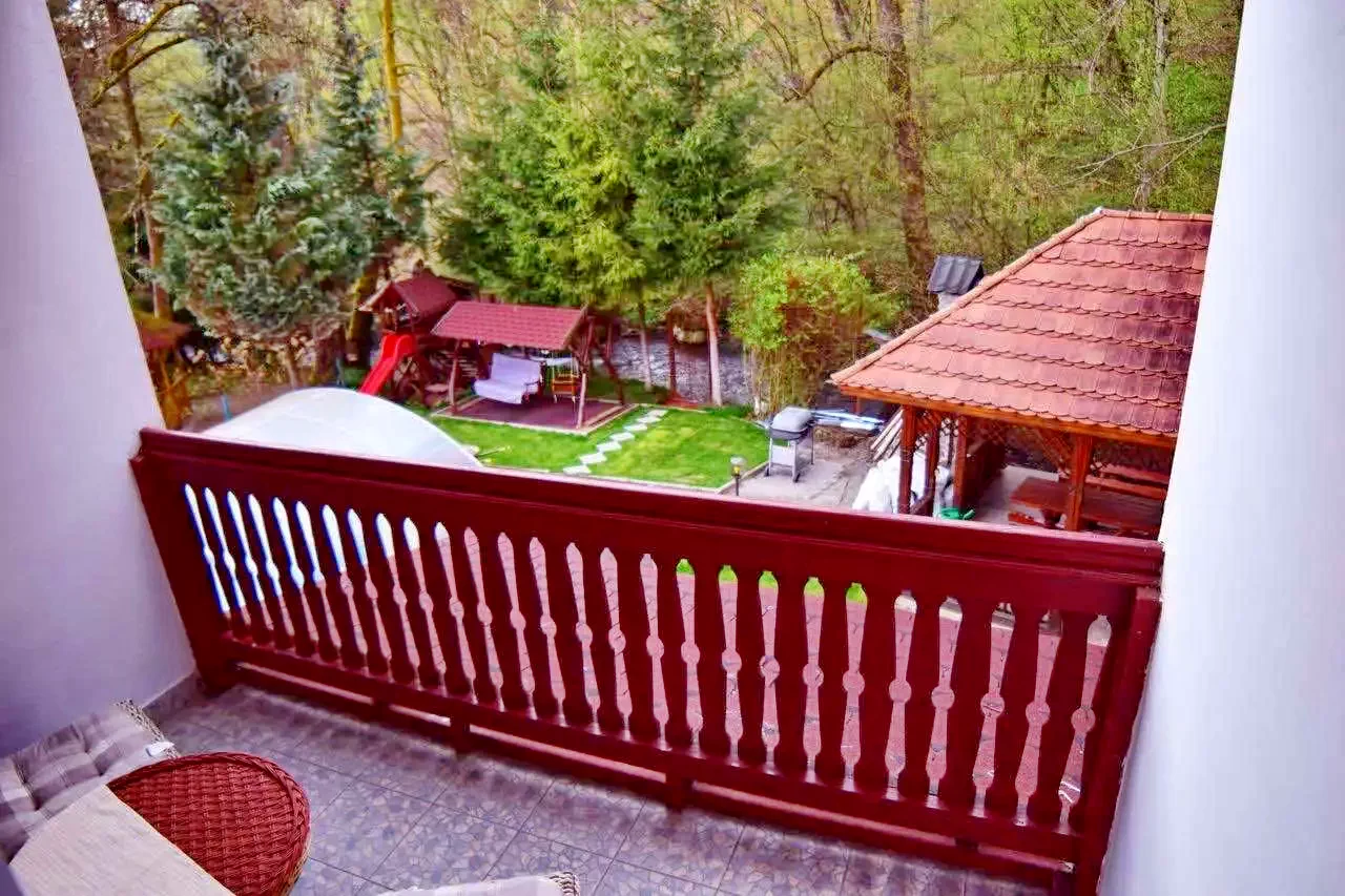 - balcon cu vedere la râu şi la pădure,