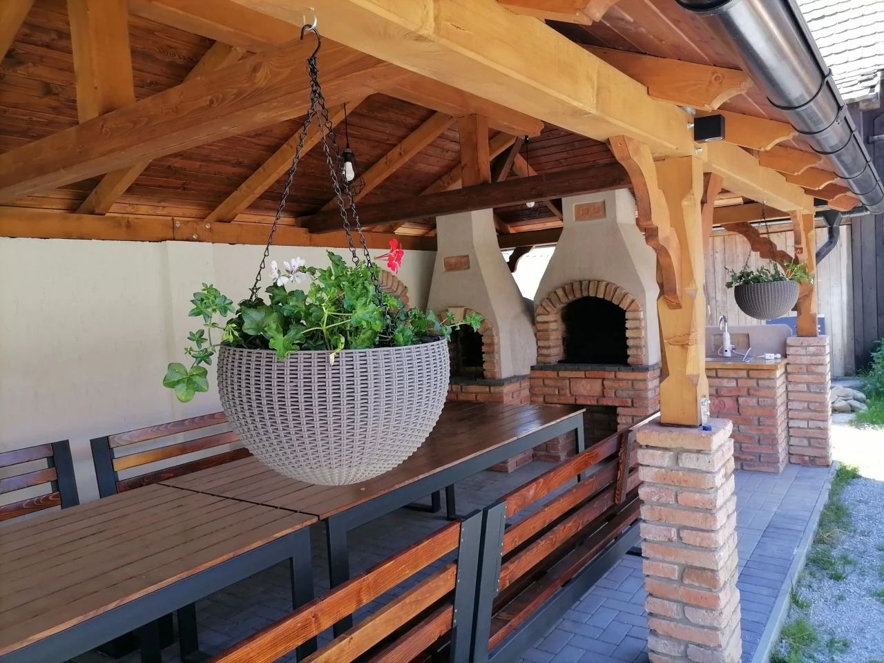 Dispune de o bucătărie utilată (25 mp), o sufragerie - lounge comun și un cuptor de grădină acoperit.