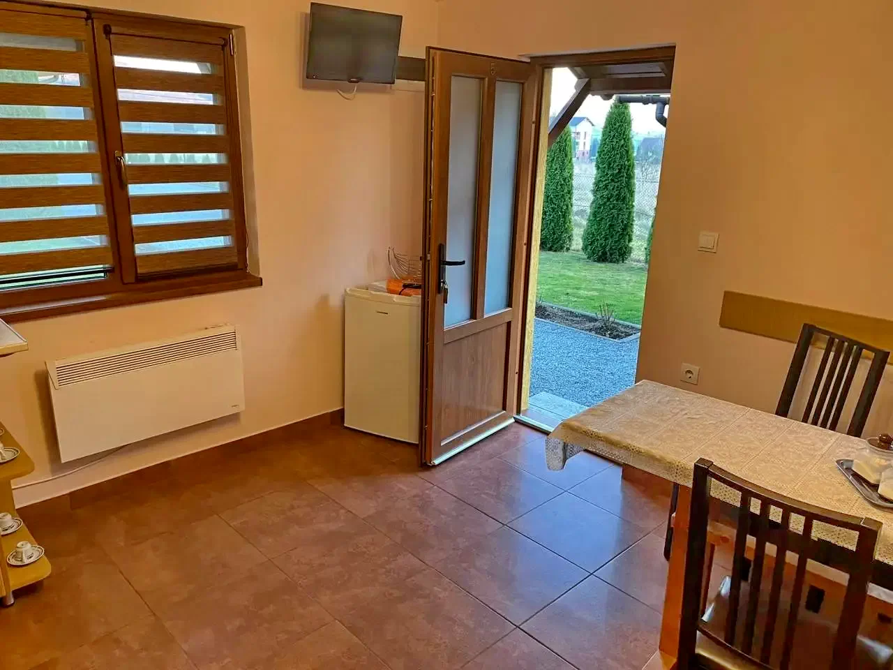 Bucătăria si foișorul sunt utilate cu aragaz, frigider, cuptor cu microunde, filtru de cafea, veselă, tacâmuri, etc.