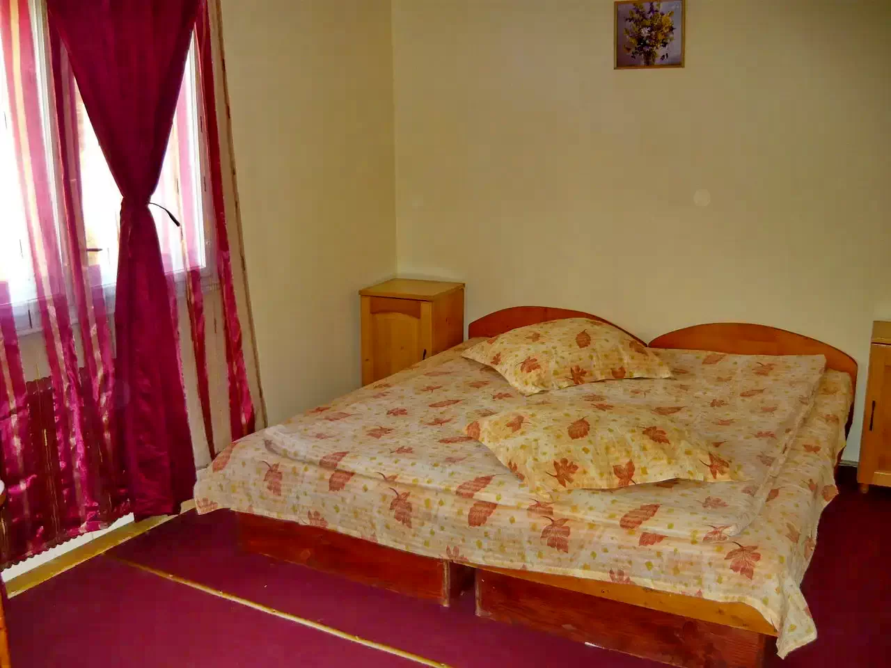 - 4 camere duble cu pat matrimonial, pentru 8 persoane , intr-o camera poate fi introdus un pat suplimentar