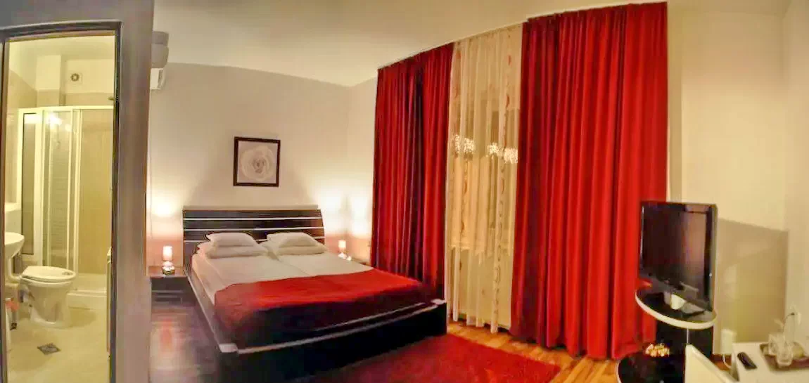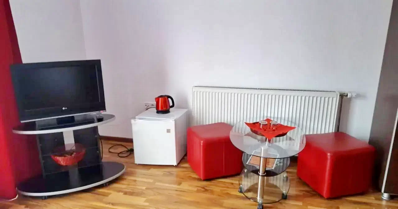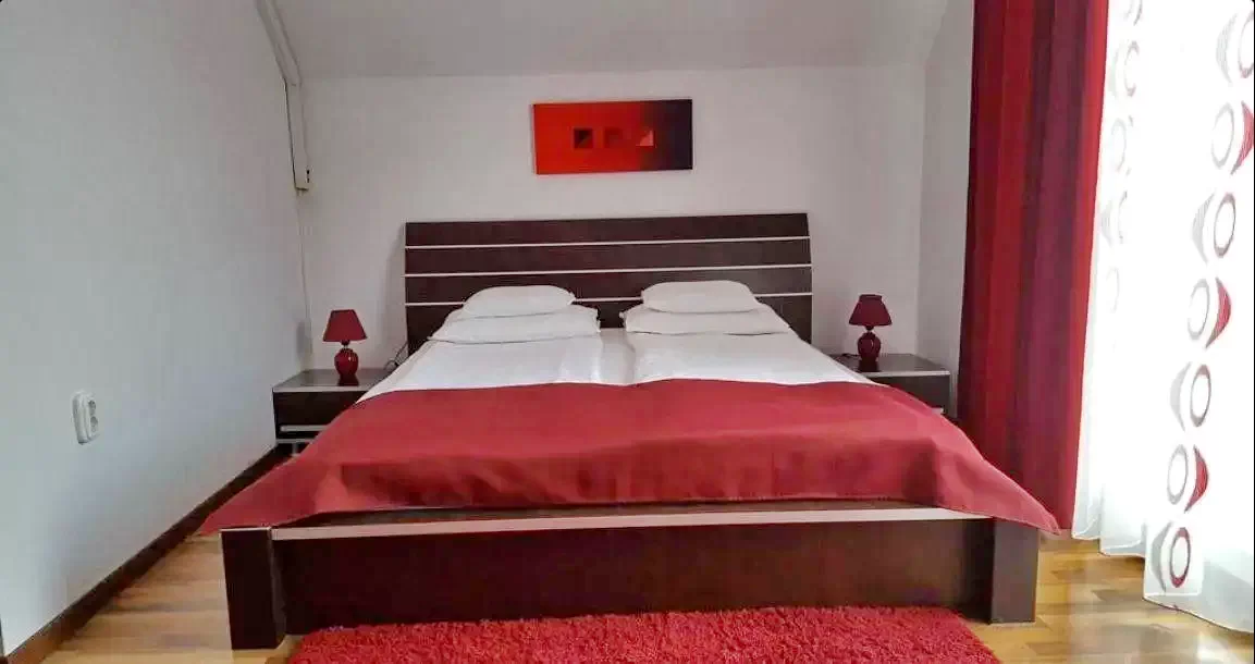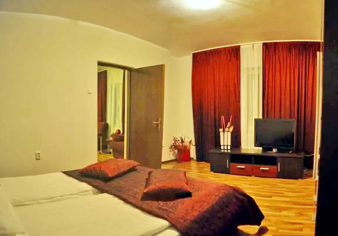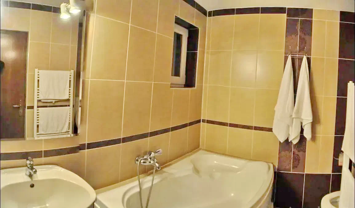 - apartament 2: bucatarie proprie, o canapea extensibila si un dormitor cu pat matrimonial, baie proprie