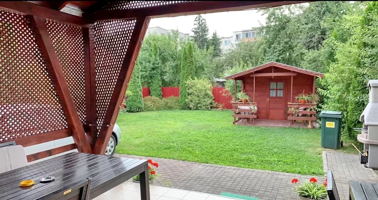 - Curtea amenajată frumos include un pavilion, facilități pentru grătar și ceaun, loc de joacă pentru copii, șezlonguri și parcare.