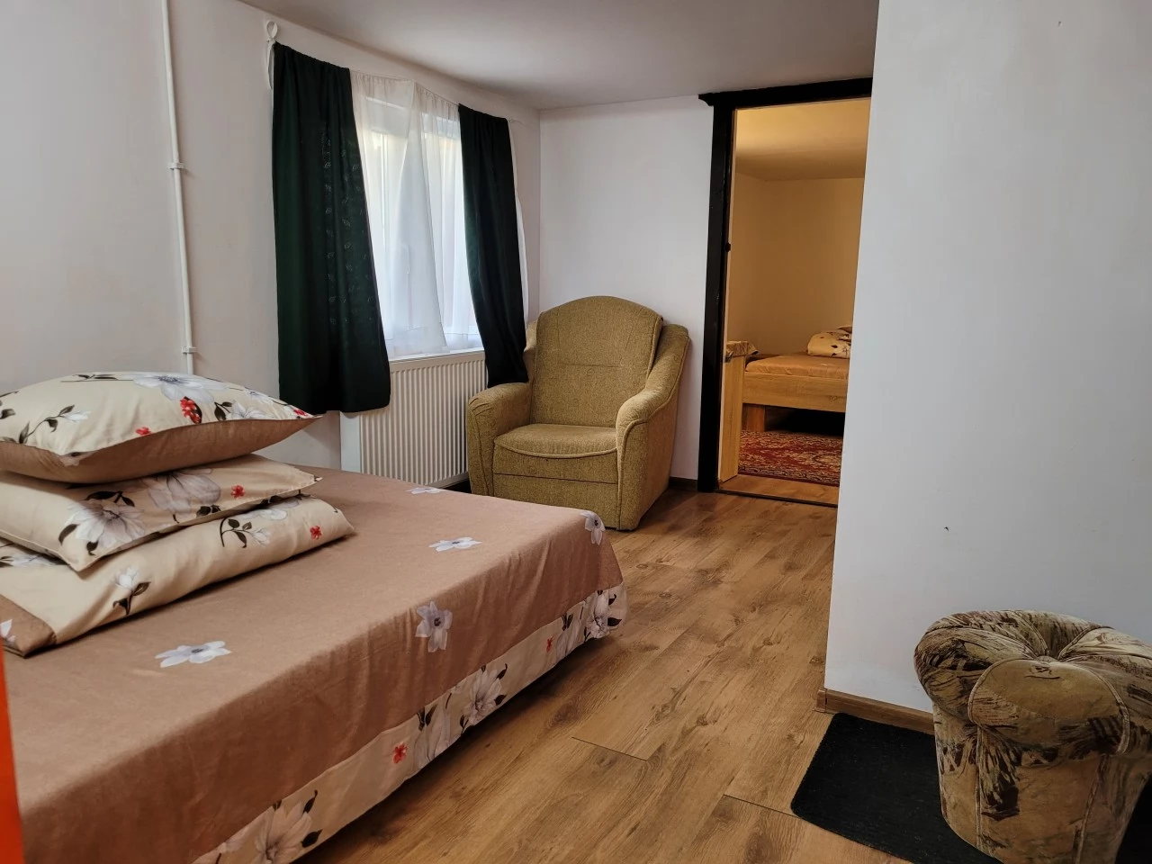 - Parter: 1 cameră cu 3 paturi duble și 1 pat suplimentar (7 persoane), TV.