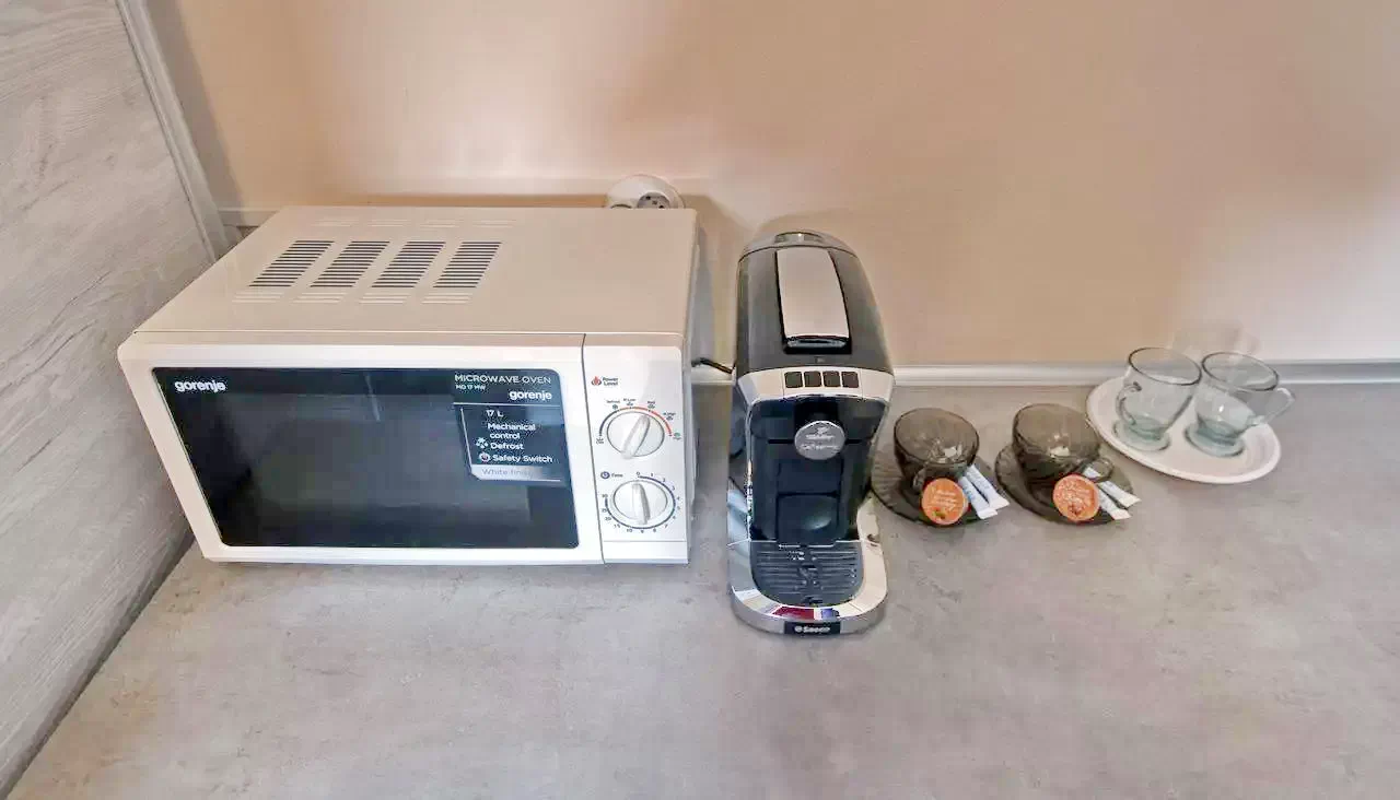 - Fiecare camera este dotat cu mobilier nou, modern, chicineta cu frigider, micro, aparat de cafea cu capsule Cibo, televizor plat si internet. Camerele au capacitate de 3+3+2+2 persoane.