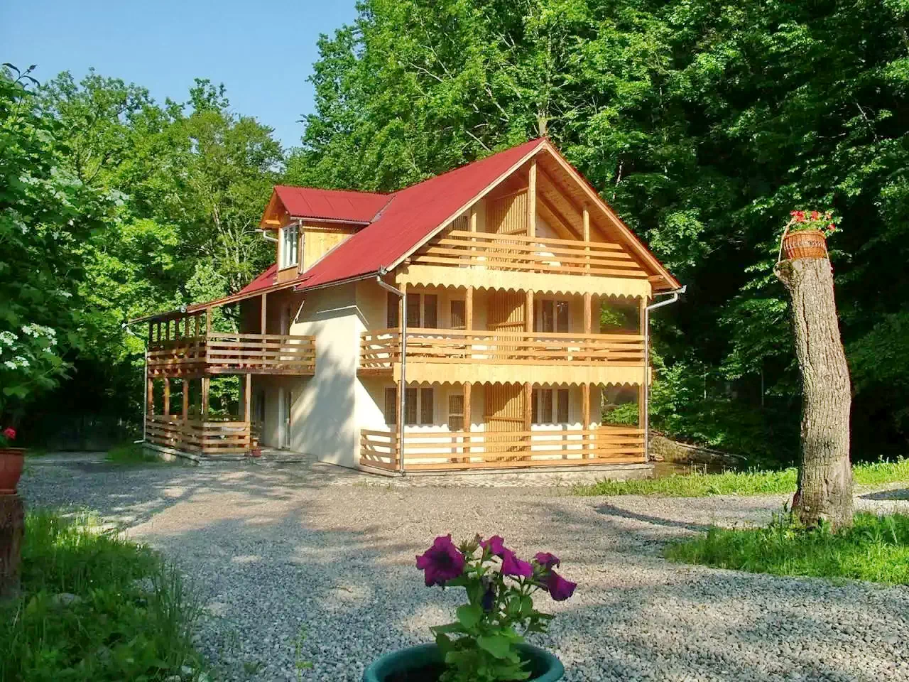 Se află in padure pe poiana la numai 300 m de Lacul Ursu, intr-un mediu linistit, pe una dintre cele mai inalte puncte ale statiunii.