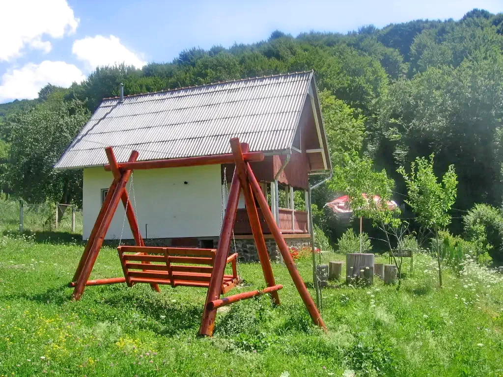 Cazare Sovata Cabană | Între pădure si pârâu, curte, bucătărie, living, terasă, grătar, loc de joacă | 5 km Lacul Ursu, 5 km Parc aventură Sovata, 13 km Pârtie de schi Sovata, 6 km Salina Praid