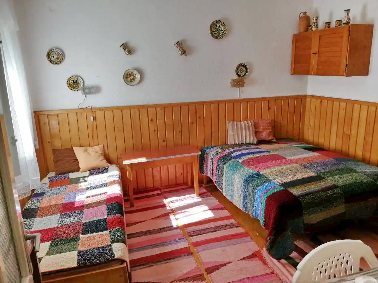 Camere: O cameră pentru 3 persoane (pat dublu + pat pentru copii), o cameră mică cu 2 paturi pentru copii, o cameră cu pat dublu (pentru 10 persoane).
