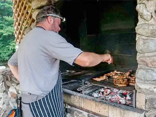 - Ofera o sufragerie si o bucătărie cu tot ce trebuie pentru gătitul şi servirea mesei (aragaz, frigider, veselă, tacâmuri, oale, cratiţe, preso cafea) situată în cadrul sufrageriei În zilele reci, plăcerea de a sta în jurul focului este asigurată de un şemineu din piatră.