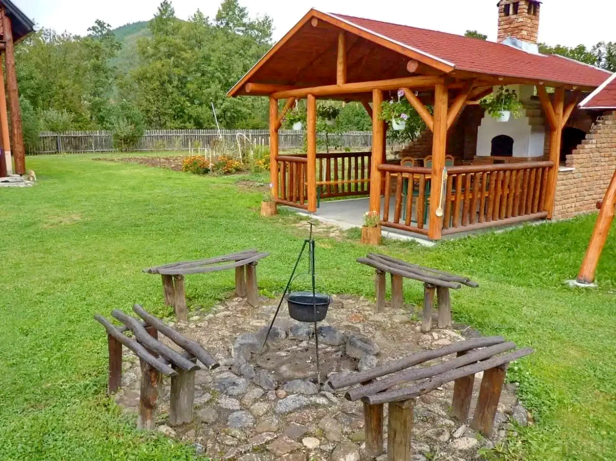 - În curte, un foișor acoperit, cuptor pentru grătar și pâine, ceaun, disc și loc de foc creează condițiile perfecte pentru gătit în aer liber, transformând fiecare masă într-o experiență memorabilă.