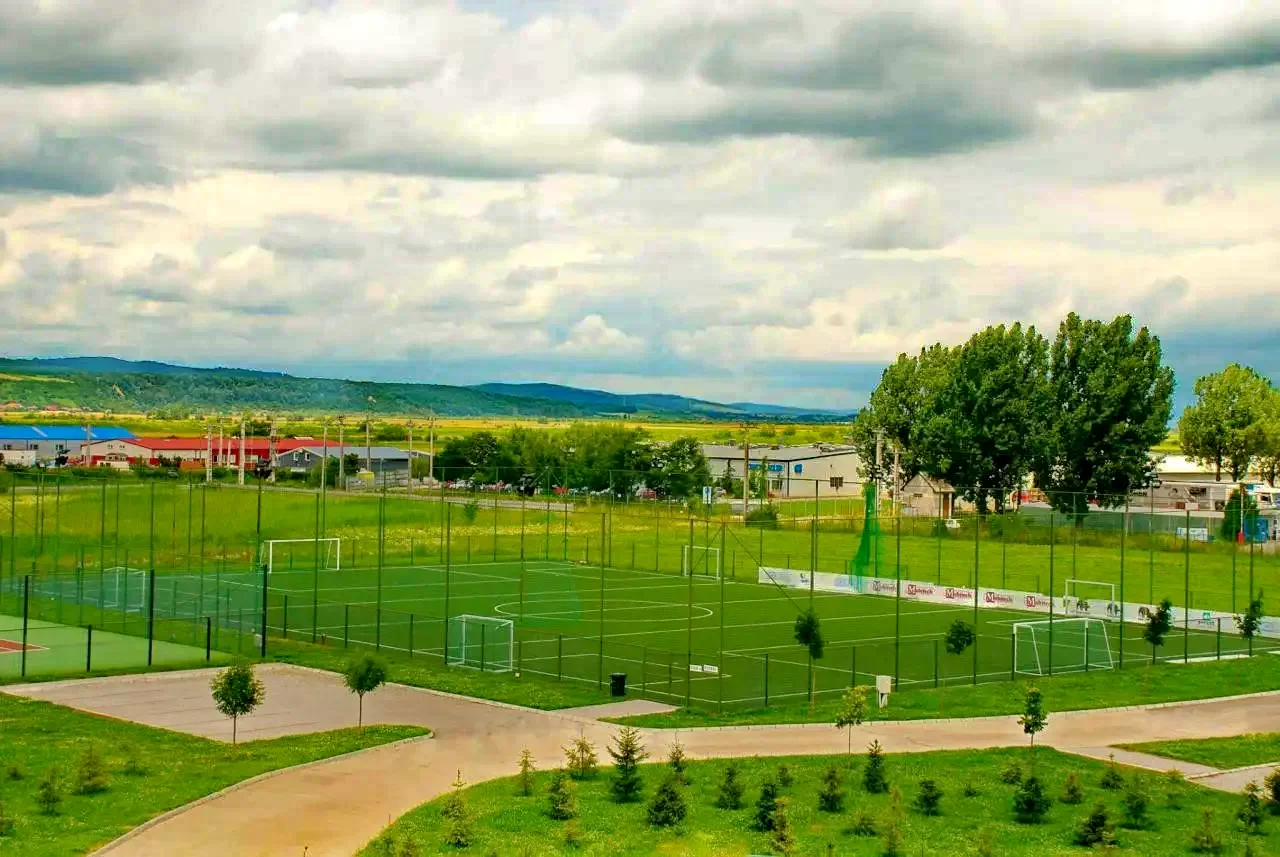 - Bază sportivă: Terenuri de fotbal, tenis și baschet pentru iubitorii de sport.