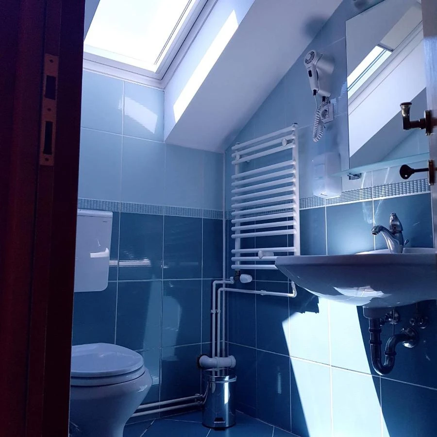 - 6 camere duble: două paturi single, TV prin cablu, telefon, cabină de duș, detector de fum.