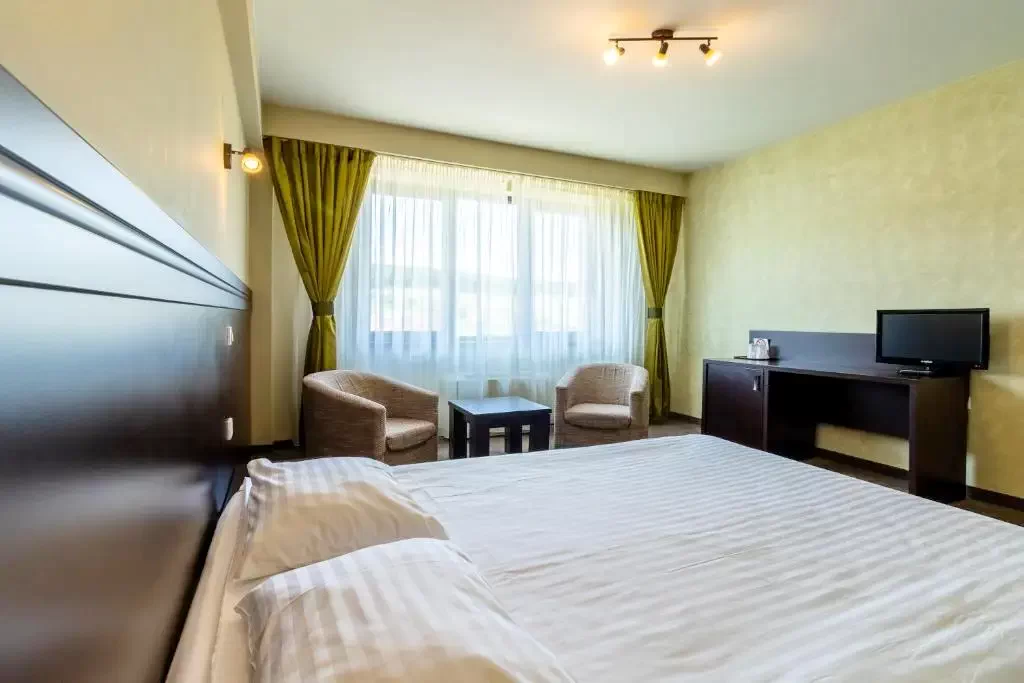 - Hotelul va oferă camere spațioase, parcare generoasa, inclusiv autocare, un restaurant / terasa foarte apreciat de localnici, la doar 7 km de centrul orașului