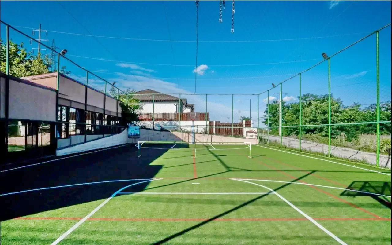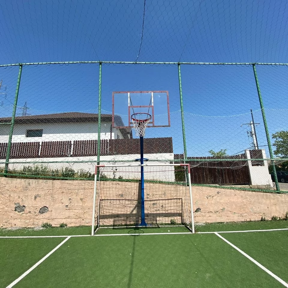 Sport: teren multisport pentru tenis, volei, baschet, ping-pong și minifotbal, potrivit pentru competiții între prieteni sau familie.