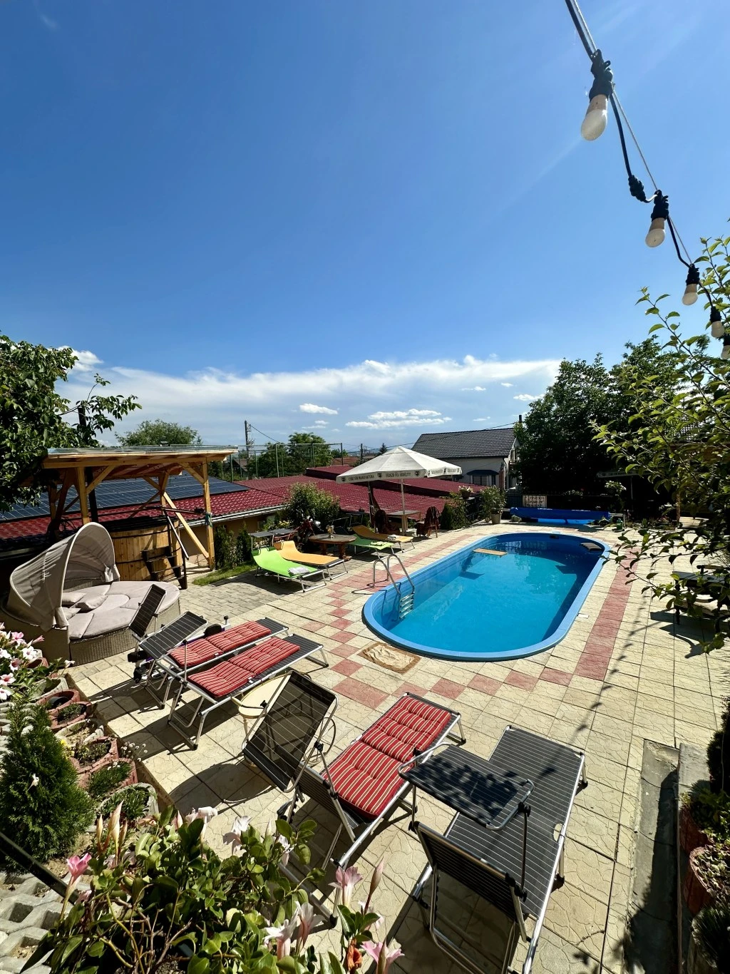 Cazare Sâncraiu de Mureş Casa de Oaspeți | Wellness: piscină încălzită, cada cu hidromasaj, ciubăr, saună; Aer condiționat; Sală de mese, bucătărie, WIFI, grădină, foișor, grătar, teren de sport, parc copii, parcare | 50m Lac de pesuit, 5km Târgu Mureș