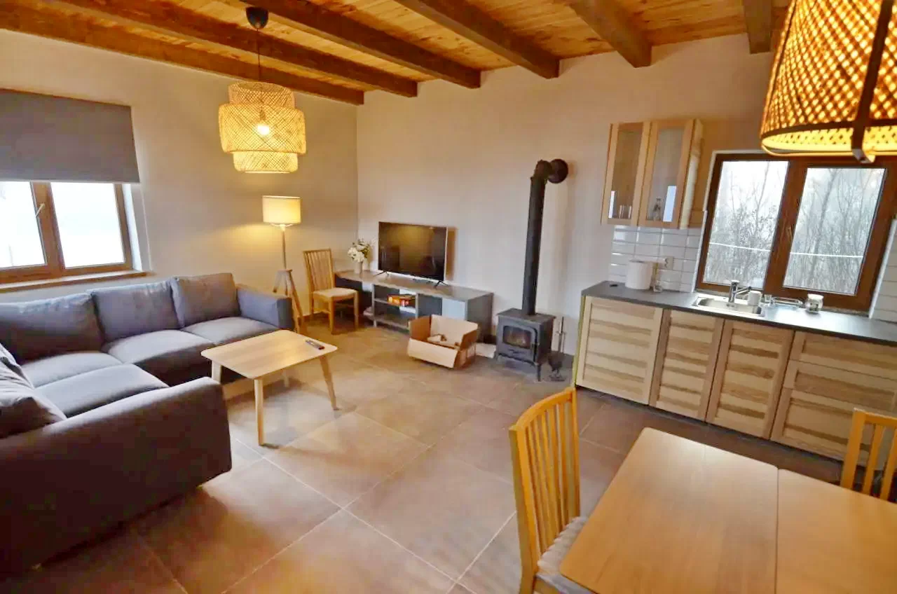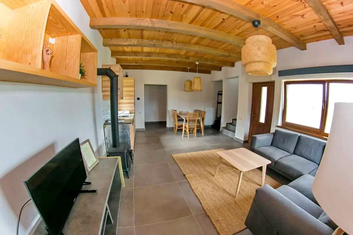 - un living comun cu sobiță pe lemne,