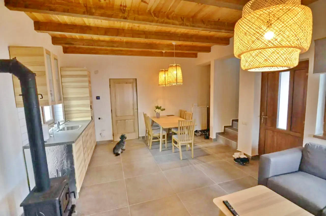 Vilele A,R si L, fiecare dintre ele are câte 3 camere duble, living comun cu sobiță pe lemne și bucătărie complet utilată și echipată.