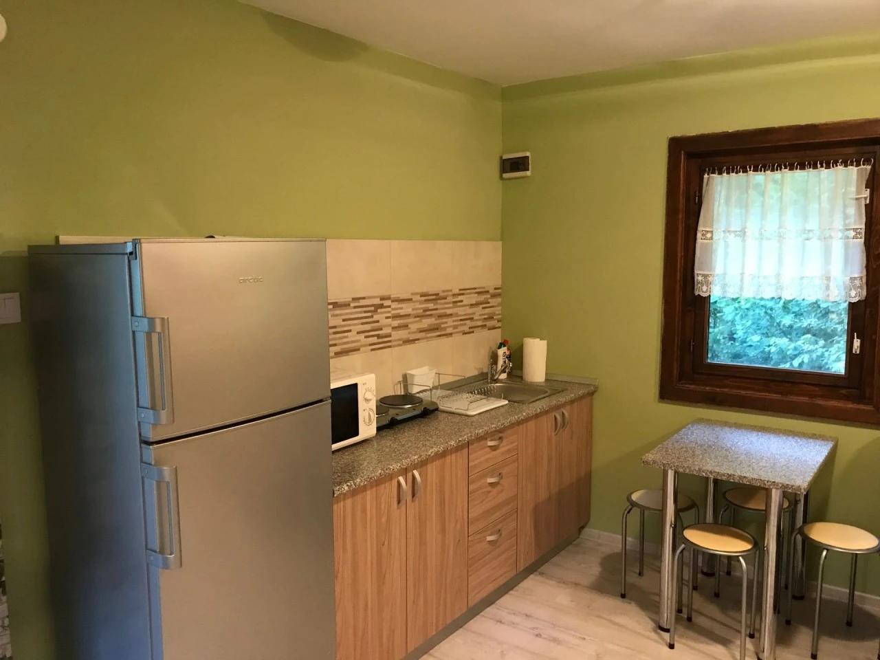 Bucătărie complet utilată (mașină de spălat, frigider, aragaz)