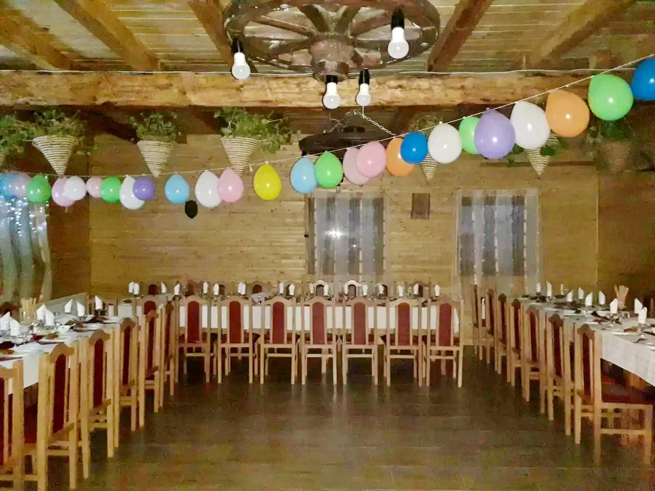 La parterul casei este o sufragerie mare ( 50 locuri) , doua WC -uri si o bucatarie dotata.