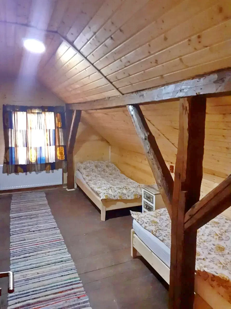 La etaj sunt trei dormitoare cu cate 6 paturi, sunt 3 WC- uri si 3 dusuri cu intrare din hol.