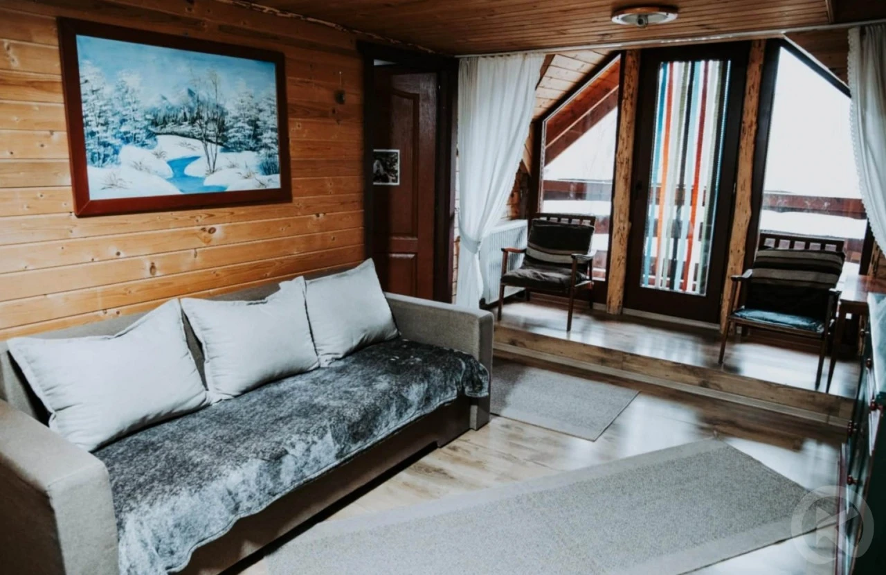 - Cabana oferă cazare confortabilă pentru 16 persoane în patru camere decorate cu gust.
