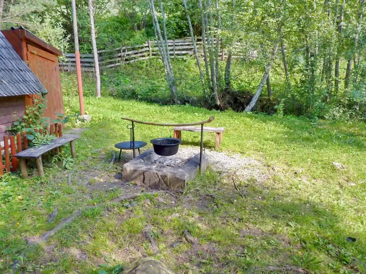 - Gătitul în aer liber este de asemenea posibil, folosind cuptorul pentru grătar și ceaunul din grădină.