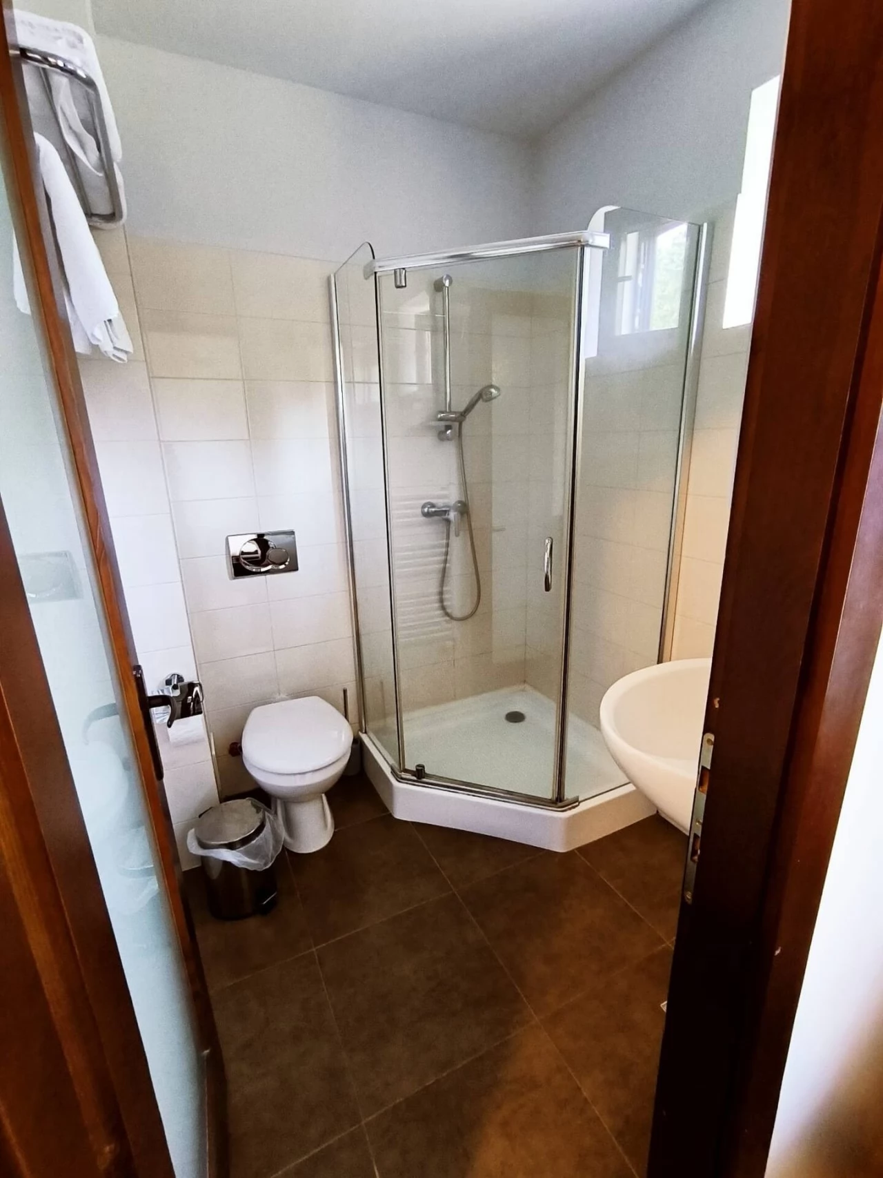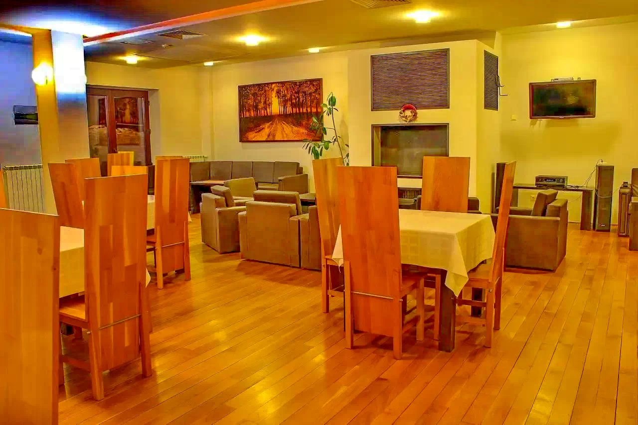 - Camerele sunt mobilate modern, dotate cu televizor, minibar și frigider, și au baie proprie.