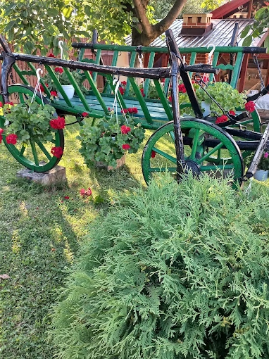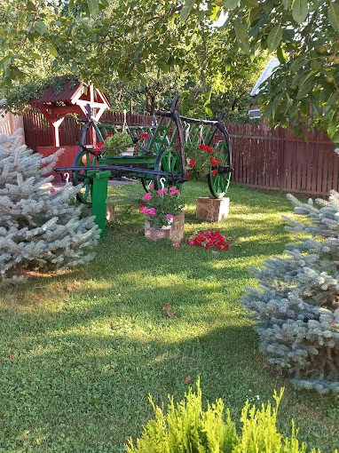 - Curtea pensiunii îi așteaptă pe oaspeți cu un foișor, mobilier de grădină, facilități de grătar, balansoare și o livadă.