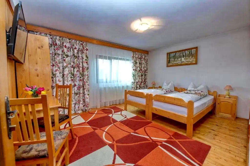 - Pensiunea oferă un total de 42 de locuri în 19 camere, toate cu baie privată (16 camere cu baie interioară, 3 camere cu baie privată pe hol, în apropiere), fiind ideală pentru familii, grupuri de prieteni și cupluri.
