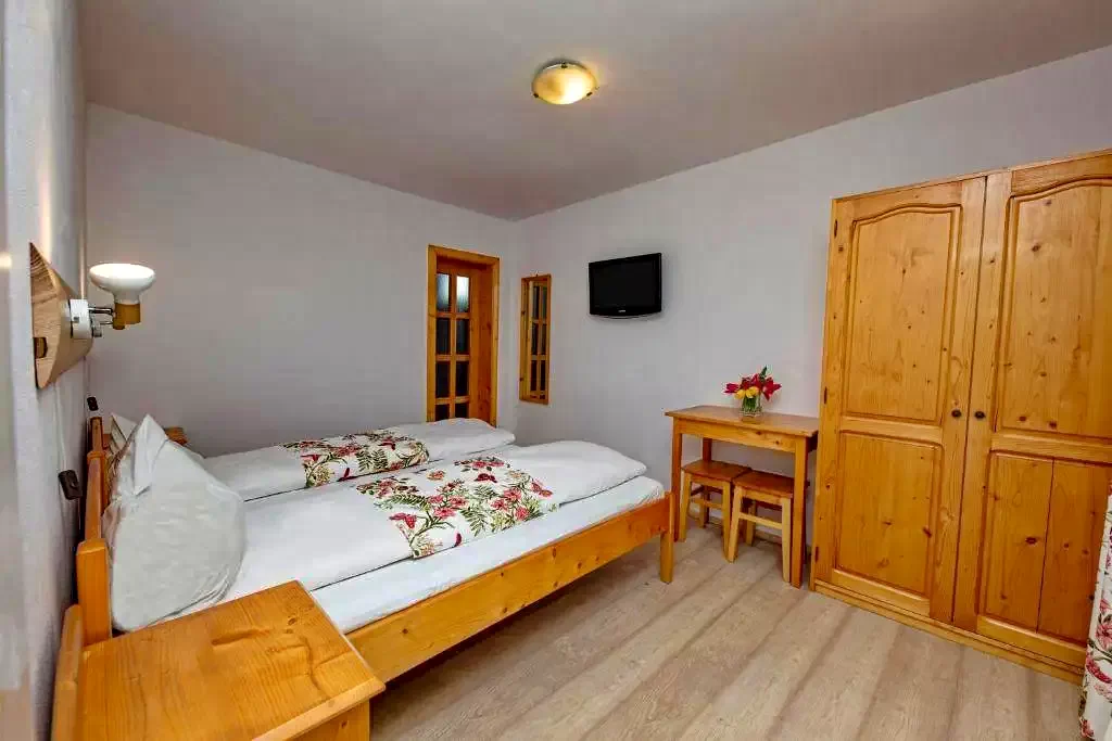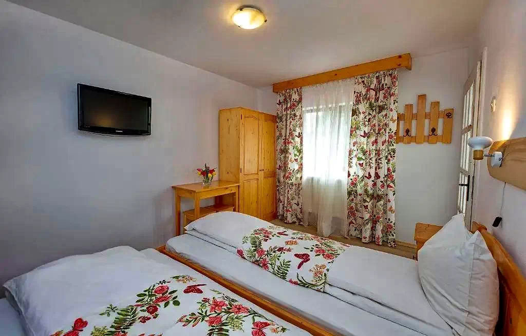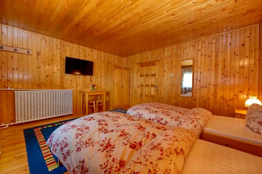 - 1 cameră: Cu pat matrimonial și un pat simplu.