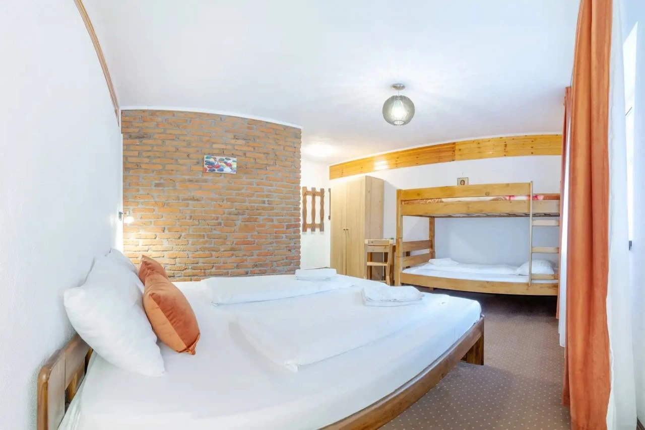 - Camere cvadruple (3 buc.): Potrivite pentru familii, cu baie privată.
