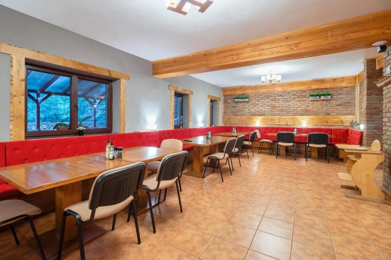 Savurați oferta variată a restaurantului hotelului, care include preparate tradiționale românești și continentale servite „à la carte”, potrivite pentru mese de familie sau evenimente speciale (nunți, botezuri, zile onomastice, team-buildings, tabere). Restaurantul dispune de 80 de locuri în interior și 70 de locuri pe terasă, oferind opțiuni de pensiune completă (240 RON/copil, 300 RON/adult), demipensiune (195 RON/copil, 230 RON/adult) sau cazare cu mic dejun (130 RON/copil, 165 RON/adult).