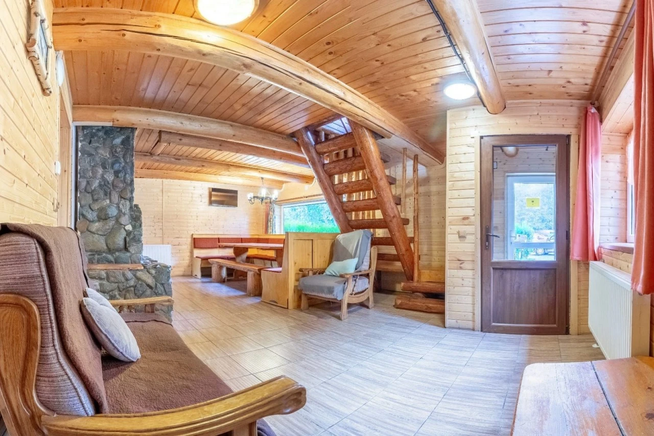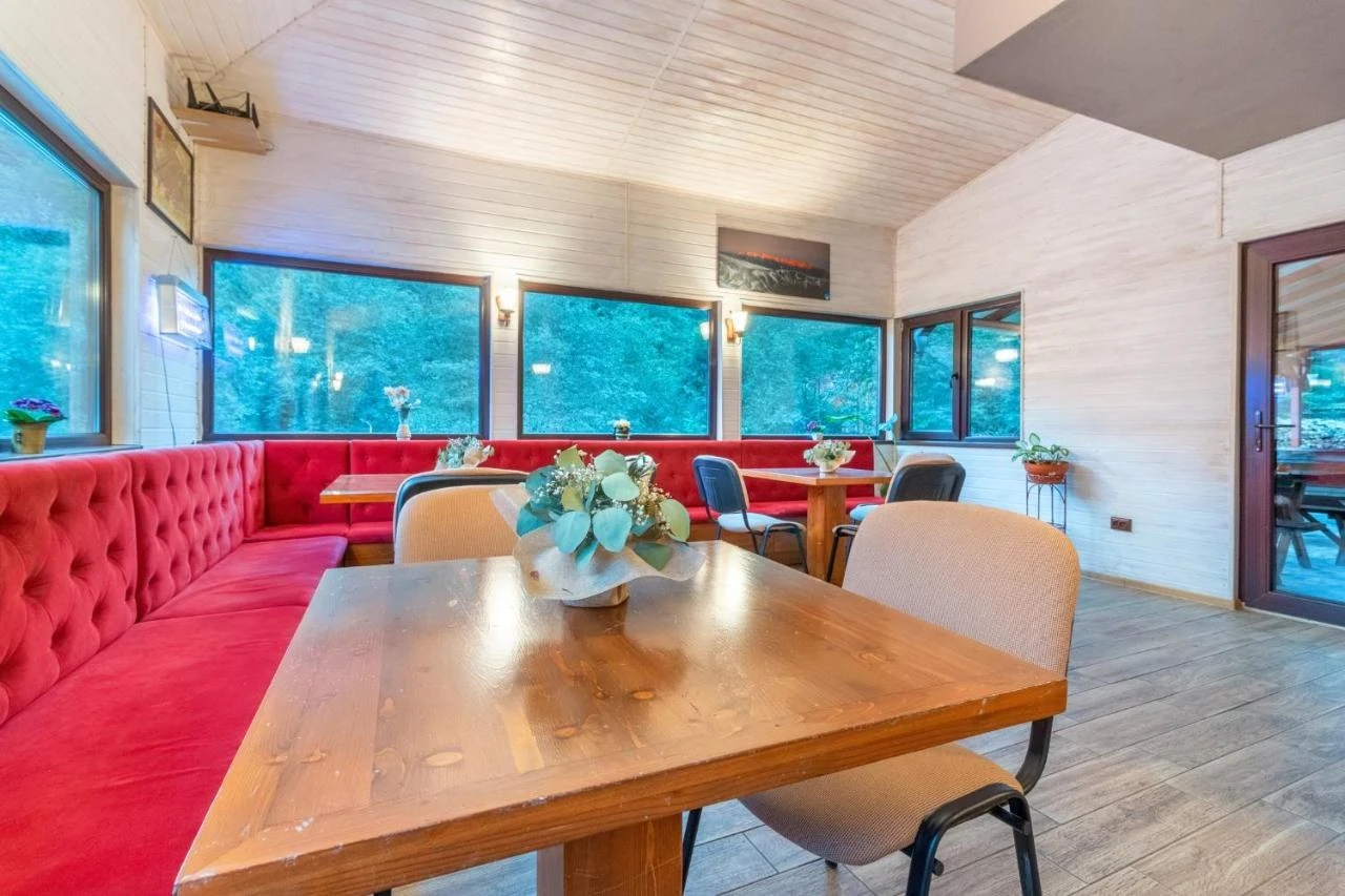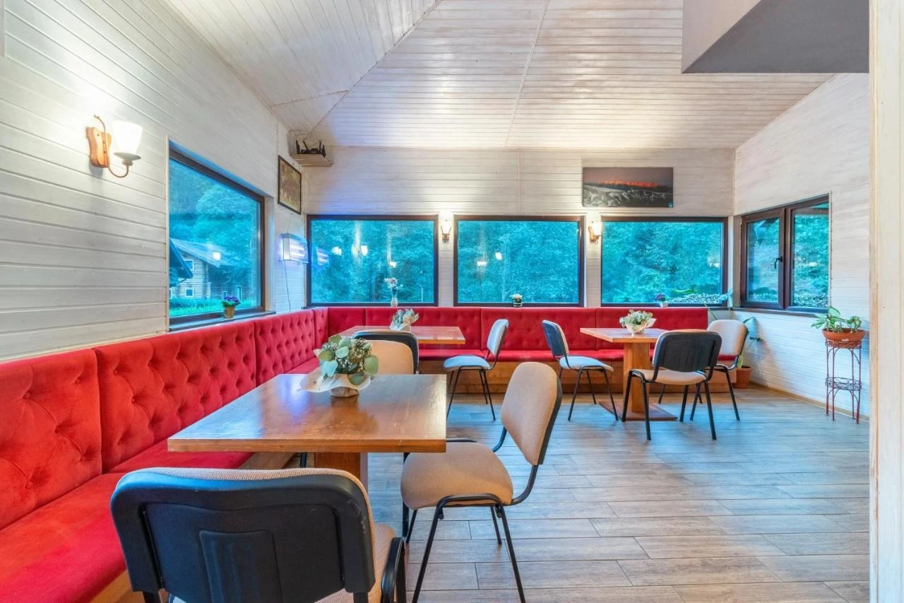 - Interior: Smart TV, Wi-Fi gratuit, bucătărie utilată în cabane, băi private, living spațios în cabane, sală de conferințe (60 locuri), sală de evenimente.