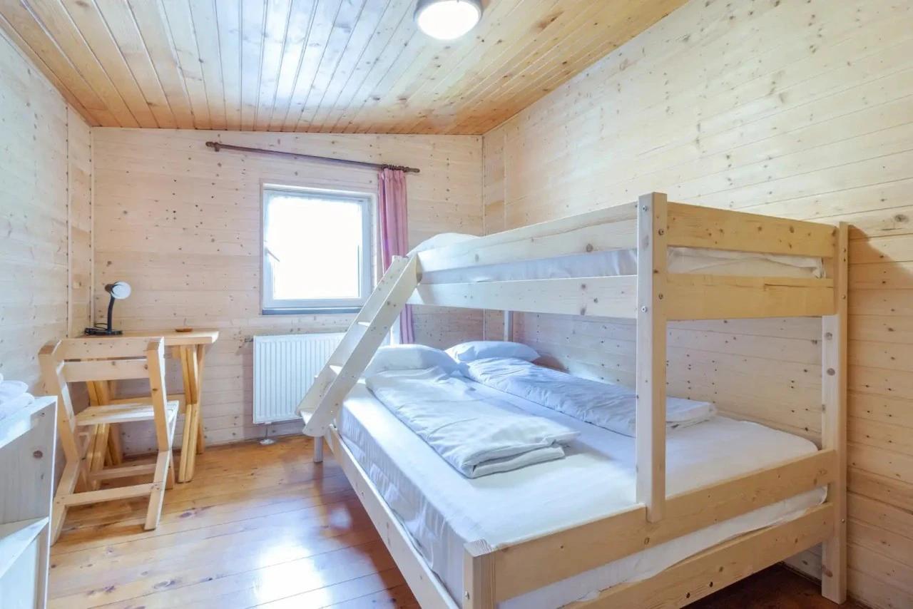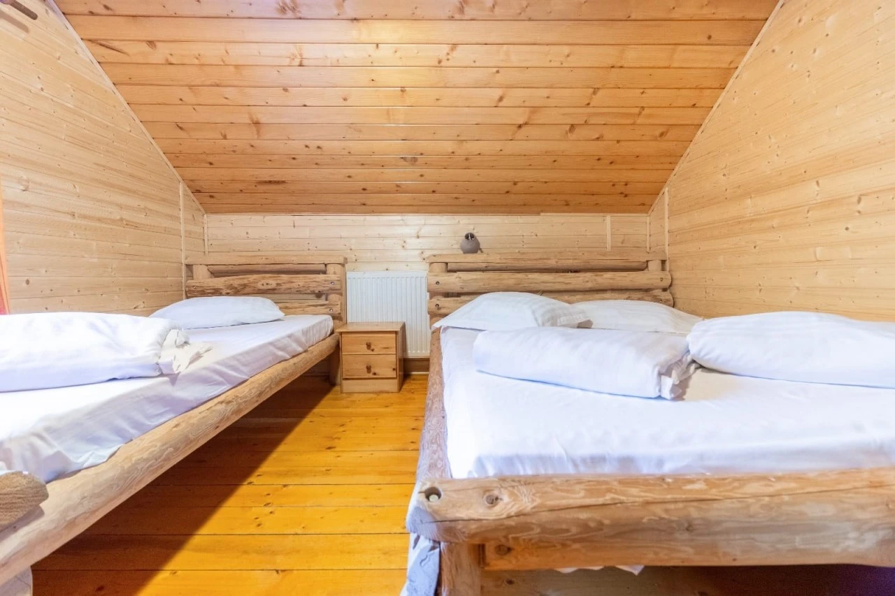 - Cabana Tămaș (17 locuri): 2 camere cvadruple (pat matrimonial și pat supraetajat), 3 camere triple (pat simplu și pat supraetajat), 3 băi (1 la etaj, 2 la parter).