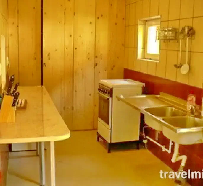 Cabana din Liban funcționează în regim self-catering, cu o bucătărie modernă echipată cu aragaz pe gaz butelic, frigider, cafetieră, vase, tacâmuri și pahare.