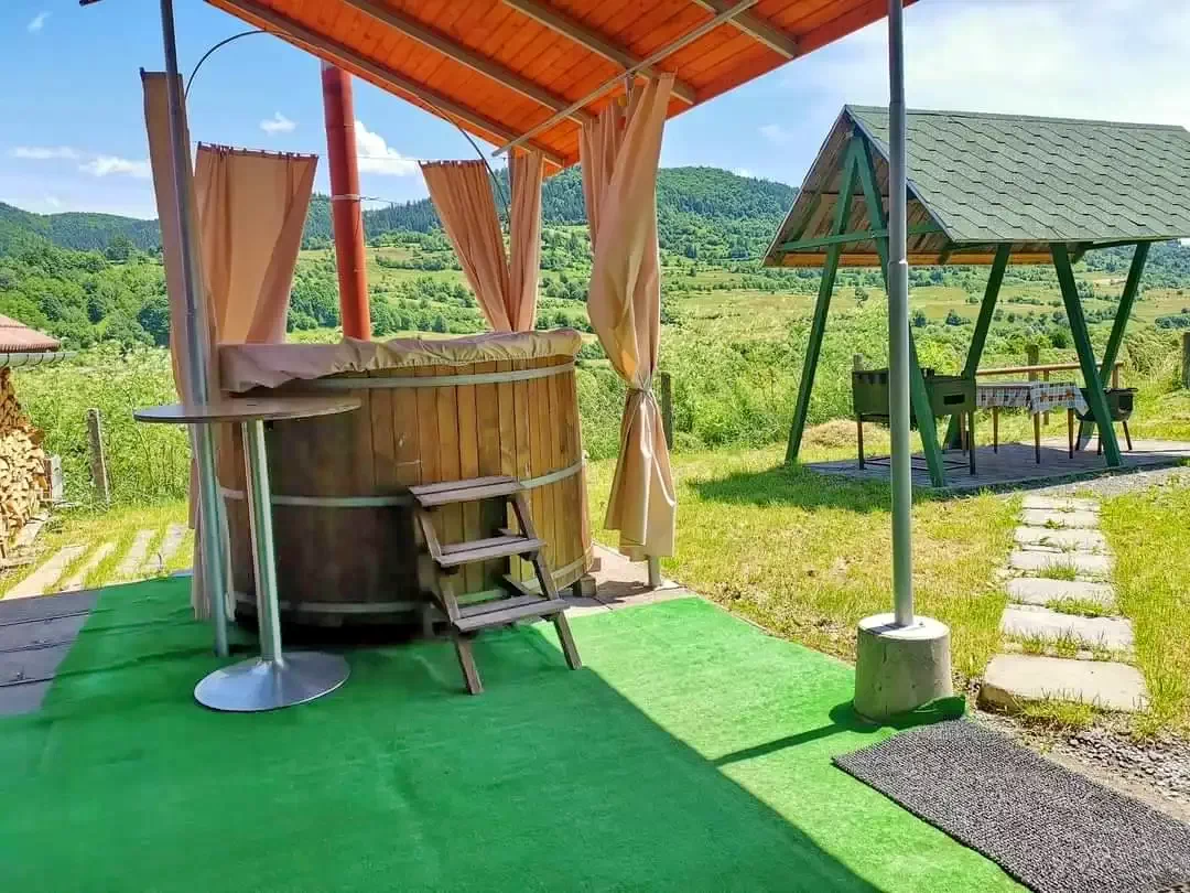 - Grădina pensiunii oferă o vedere minunată asupra munților Harghita.