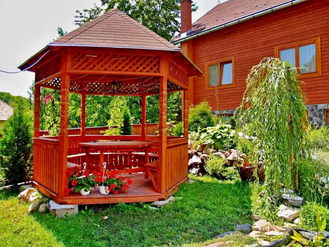 - Pensiunea dispune de o cadă de lemn cu apă care poate fi încălzită, astfel poate fi folosită în orice anotimp. „Jacuzzi în stil secuiesc” cu un diametru de 2 m și cu o adâncime de 120 cm, umplut cu 3500 litri de apă, care oferă relaxare pentru 6-8 persoane. Deoarece punerea în funcțiune a căzii durează 12-15 ore – în funcție de anotimp – (golire, curățare, dezinfectare, umplere și încălzire), vă rugăm ca în cazul în care doriți să folosiți acest serviciu, anunțați-ne cu cel puțin două zile înainte de sosirea Dvs.